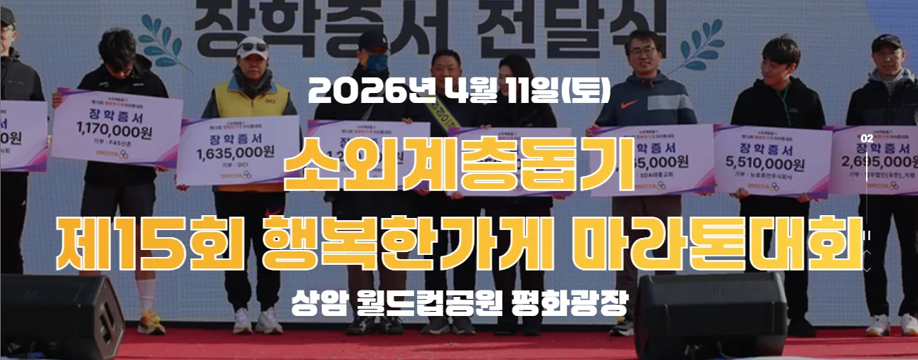 제15회 행복한가게 마라톤대회에 함께 해주셔서 고맙습니다 투명경영 정도경영을 통하여 참가자분들께 보답 하겠습니다 감사합니다