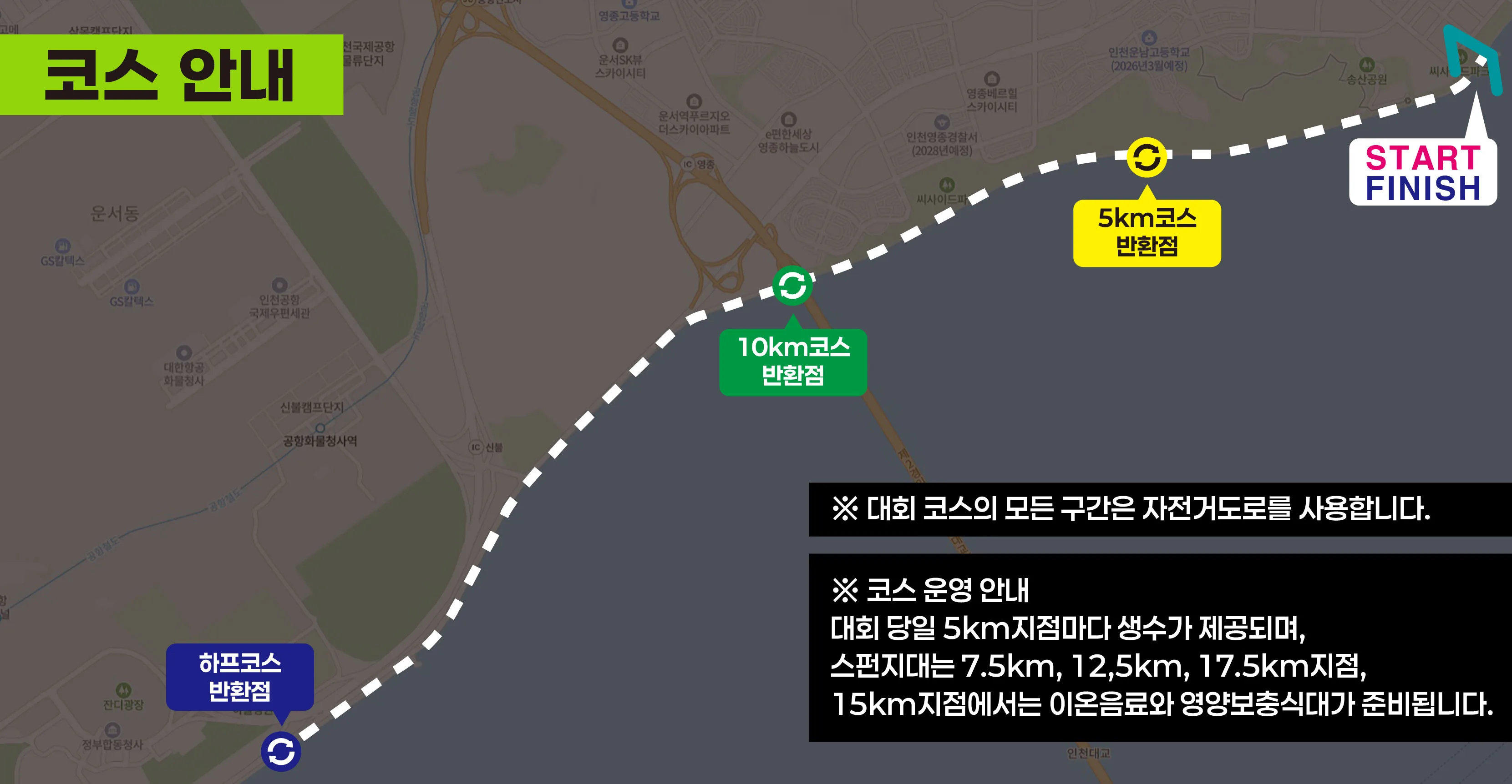 대회일시 : 2026.5.16(토) 오전 9시 출발 / 인천 중구 씨사이드파크 일원 (하늘구름광장) 참가부문 : 하프코스, 10km코스, 5km코스 / 전종목 참가비 50,000원 접수기간 : 2026.2.23(월) 오후 2시부터 선착순 5000명 (입금완료 기준)