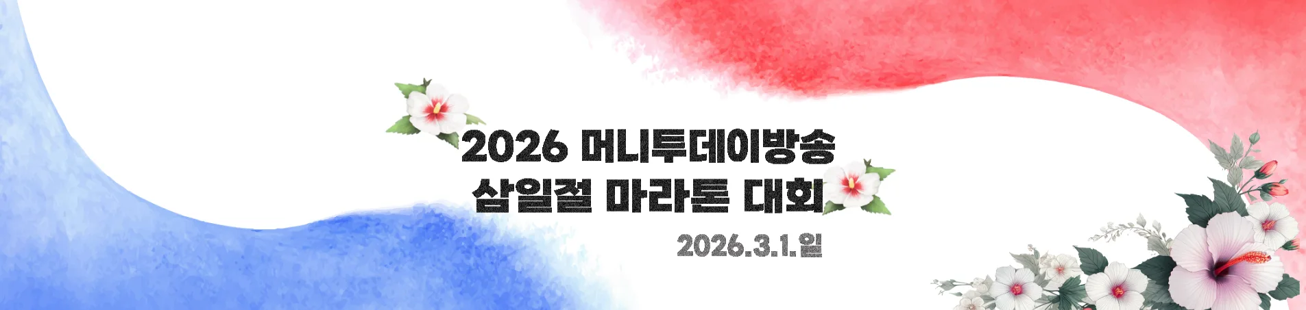 2026 머니투데이방송 삼일절 마라톤 대회 ● 일시 : 2026년 3월 1일(일) 오전 9시 ● 장소 : 뚝섬한강공원 수변무대 ● 주최 : (주)머니투데이방송 ● 주관 : 전국마라톤협회 ● 후원 : 문화체육관광부, 국가보훈부, 광진구 ● 협찬 : 신한금융그룹, 하나금융그룹, 캐리어에어컨, 자담치킨, 농심 백산수, 르피랩 ● 협력 : 월드런, 전사모 페이싱팀 *3.1절 의미에 맞는 이색 복장상 시상* 선착순 7000명 마감예정 (신청 및 입금자) 조기마감 될 수 있으니 접수를 서둘러 주시기 바랍니다.