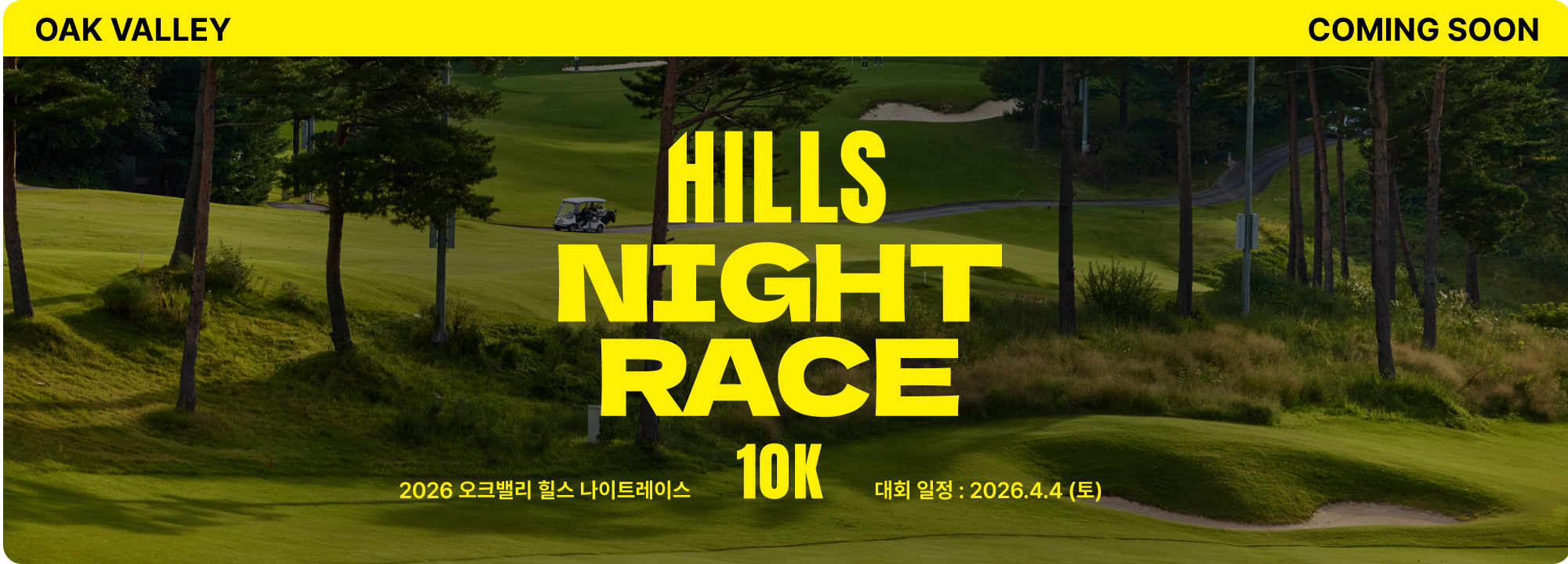 밤의 골프장 카트 로드에서 펼쳐지는 획득고도 360m 다이나믹 업다운힐 이색 레이스에 도전! 답답한 도시를 벗어나 탁 트인 언덕을 배경으로 가장 도전적인 10K레이스를 경험하세요! 밤의 골프장은 러너들의 무대가 됩니다! -서울에서 단 1시간 30분 거리 -왕복 셔틀 패키지(종합운동장역, 사당역) -리조트 숙박 및 시설 할인