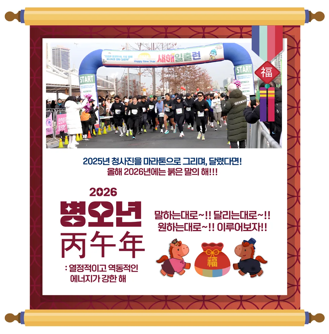 언제나 새해맞이 1월 1일 하는 마라톤!!! 새해일출런 마라톤대회에 참가하셔서 올해 2026년 특별한 한 해를 시작하시길 바랍니다.