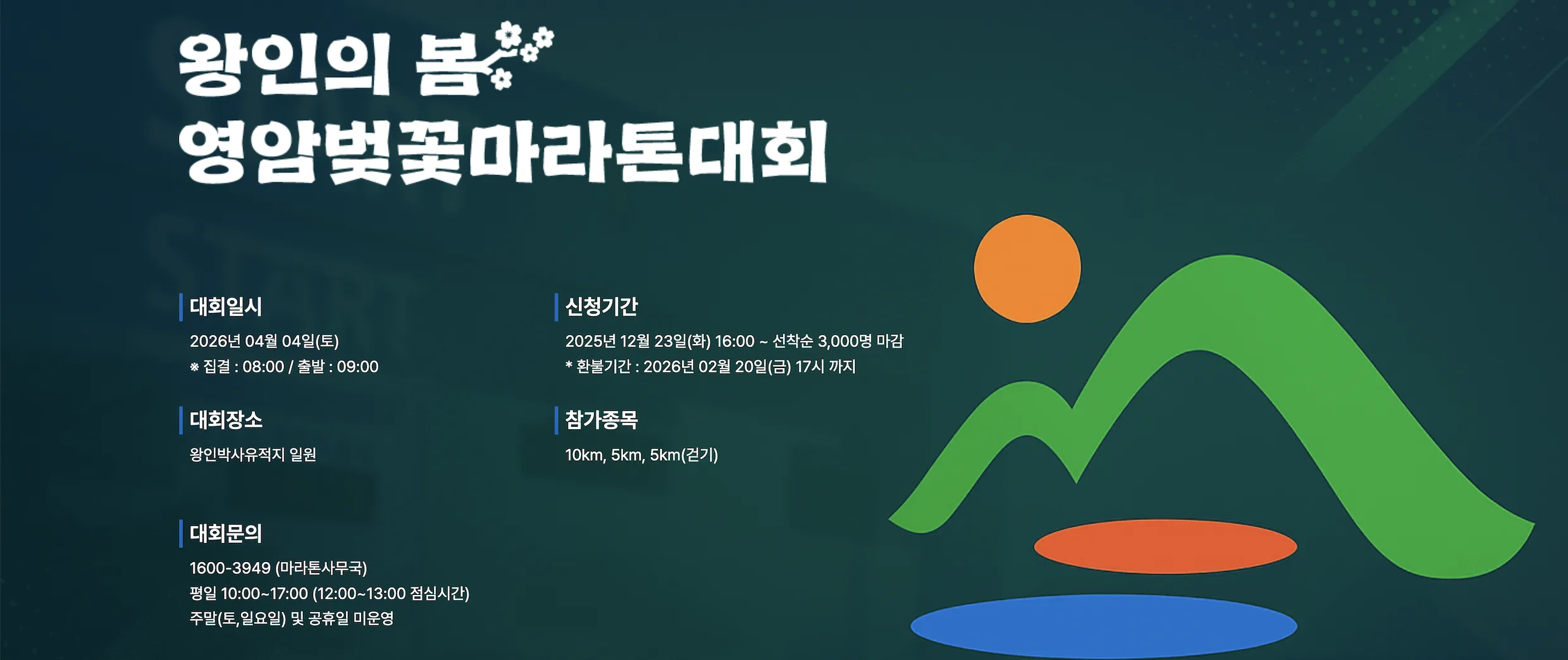 2026 왕인의 봄 영암벚꽃마라톤대회 선착순 3천명 입니다. 많은 참여 부탁 드립니다.